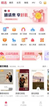 1、点击“婚贝请柬”进入APP,点击底部中间“作品管理”