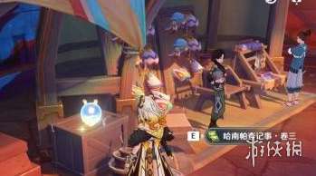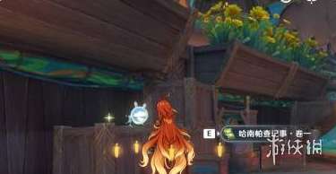 3、在楼梯底部左侧第一个摊位旁边放着一个木箱子,木箱子顶部有闪光点,与其互动便可获得《哈南帕查记事·卷三》。