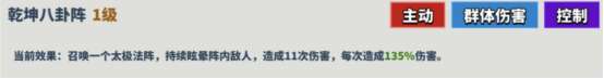 描述:召唤一个太极法阵,持续眩晕阵内敌人,造成11次伤害,每次造成135%伤害。