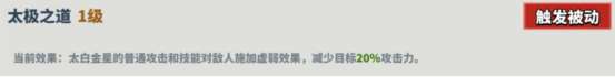 描述:太白金星的普通攻击和技能对敌人施加虚弱效果,减少目标20%攻击力。
