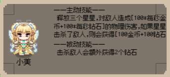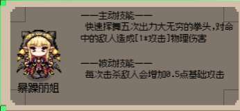 前期使用的角色,击杀增加的攻击力,相对会比较平稳度过前期