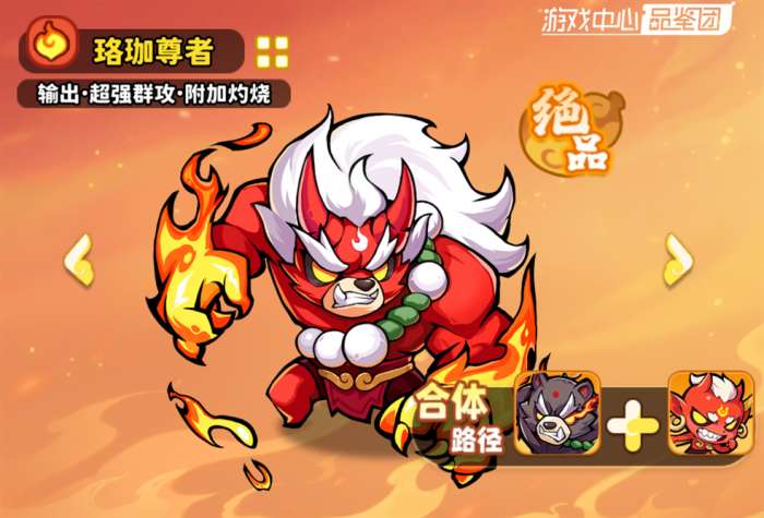 火系的整体输出能力较高,弱点是没有控制,控制可通过水系、物理系的绝品英雄来补充,而我们主核仍可选择赤焰魔童。玩这个体系要同步养成珞珈尊者,可给敌方附加更多的灼烧,并且可打出定身效果,稍微补充控制。珞珈尊者合成后可大幅提升火系英雄攻击,也是后期增益的必备选项。