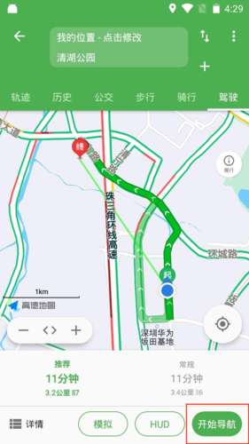 2、在导航界面可以看到去目标点的路线,点击下方的开始导航按键;