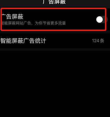 然后就会进入到广告屏蔽页面了,在这个页面的顶部就是“广告屏蔽”的设置项。