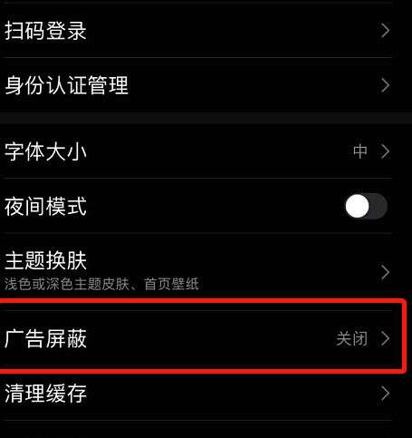 进入到设置页面之后,找到“广告屏蔽”选项,并点击。