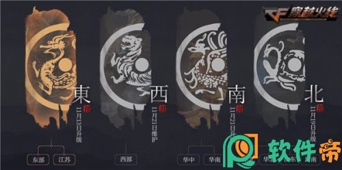 CF将从原本的九大战区升级成为四大战区。合区完成后,原东部战区、江苏战区将共为东部战区;原华中战区、华南战区将并为南部战区;原西部战区保持不变;而北部战区则将包含华北战区、山东战区、东北战区与河南战区。
