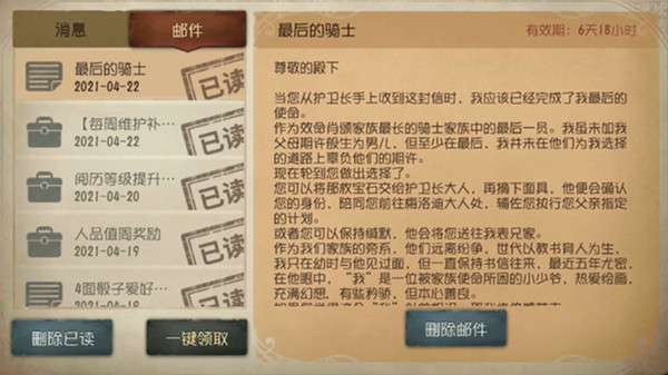 当您从护卫长手上收到这封信时,我应该已经完成了我最后的使命。