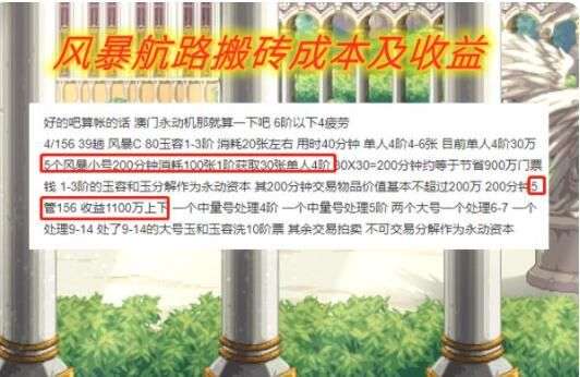 风暴航路相对来说还是有一点难度的,勇士们至少有-身100级传说装备,才能挑战该副本。当然,该副本的收益也是比较高的,是100级版本官方指定的搬砖副本。风暴航路不仅可以产出大量金币,还能产出堇青石这个材料。革青石是100级版本的主要材料,不仅可以当作团本门票,还能用于铭刻/继承装备、兑换罐子等,所以它的价格注定有所保障。顺带一提,现在也有人收费带风暴,勇士们如果没装备也可以选择“坐车”搬砖,也是有一定收益的。