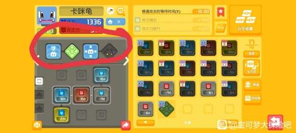并且槽的位置还有不同,如图中杰尼龟就是两个技能都可以镶一个槽,如果杰尼龟一二技能挨着,或者分居两头,那么就是其中的一个技能可以镶两个槽。