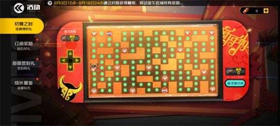 6月3日12点起,“初夏之时走棋得好礼”活动正式上线。消耗鞭炮使金牛在活动界面中移动,移动过程可以获得糖果,当移动至特殊位置时还有道具奖励,鞭炮通过单局对战获得;