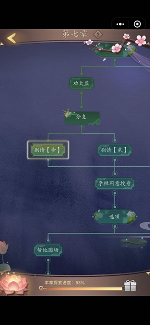 第七章很多提升好感的剧情,需要开启对应的条件,按照图示去找分支的时候花点金币解锁分支条件详情,另外王爷在本章的好感要求,分别要达到30及50,才能开启部分剧情哦。