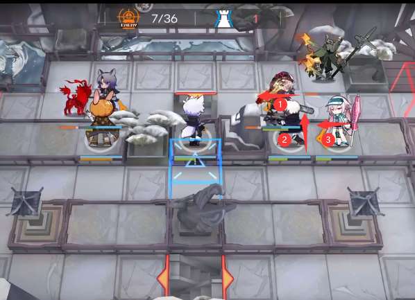 这一关开局费用比较紧张(尤其是六星术师),可以先用砾代替先锋的位置再下先锋,高练先锋可以不急着下单狙先用执旗手来产费。