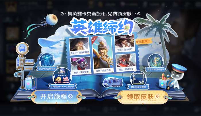 ⑧ 使用奇旅币在奖励中心可兑换:皮肤自选宝箱、心动夏日、表情自选宝箱、夏日奇旅回城特效、击败特效、头像框、荣耀播报、限时语音“约定达成”和限时语音“帮你消消暑~”等奖励;