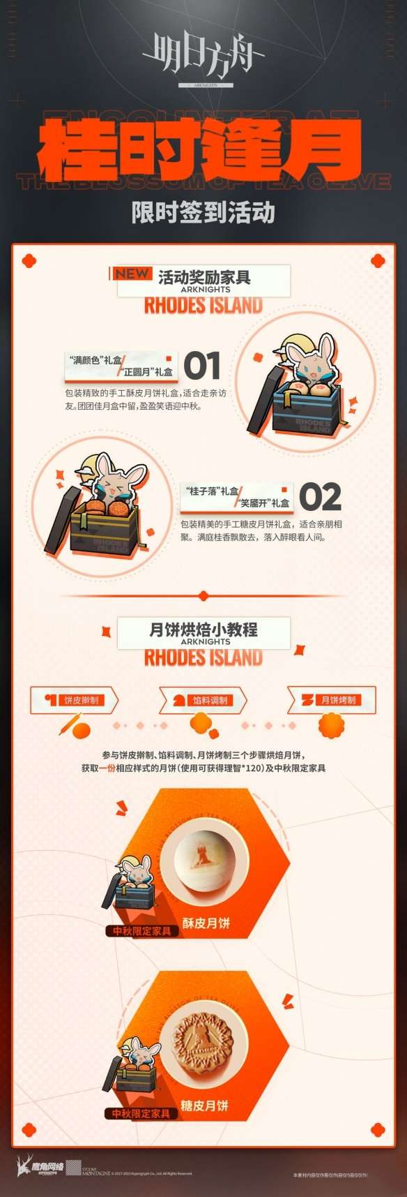 参与饼皮擀制、馅料调制、月饼烤制三个步骤烘焙月饼,获取一份相应样式的月饼(使用可获得理智*120)及中秋限定家具。