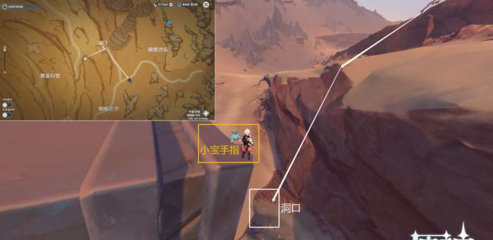 传送愚妄行宫图中锚点,往地图的东北方向走,前往小宝手指下的洞口。
