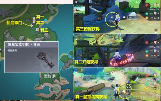 1.在收集第6个【幽灵枝】之前,我们需要先去三个地点收集3把【简易宝库钥匙】。其中,有一个宝箱需要打败对面的盗宝团才能解锁。