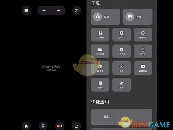 3、出现黑色屏幕,然后滑动上下左右点击确认,这样就成功投屏了。