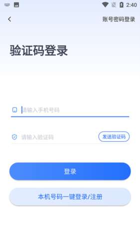 在本站下载安装软件之后,进入到软件,然后使用手机号注册填写验证码登录,也可以选择一键直接登录。