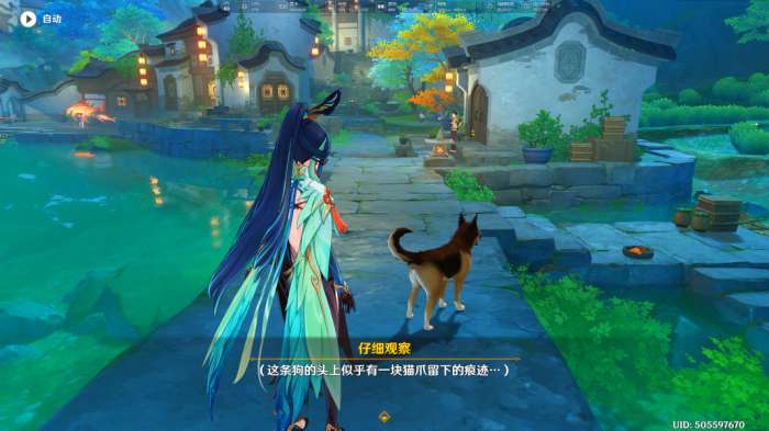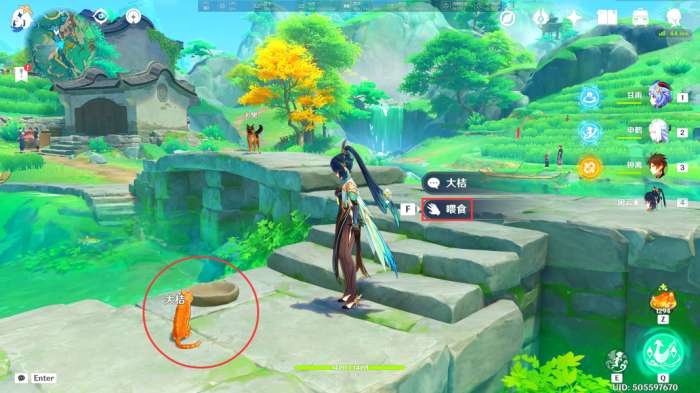 在此处可以看到一只名叫大桔的猫,我们与它面前的食盆交互