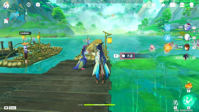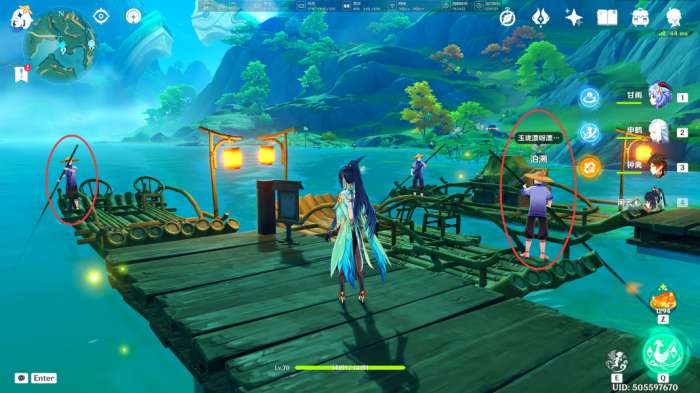 第一次主动乘坐竹筏的小伙伴,会获得一个成就哦!(在系列任务「沉玉祝珑」里,小茂会带我们乘坐一次竹筏,但不会获得成就;海灯节活动剧情里,嘉明也会带我们乘坐一次竹筏,也不会获得成就)