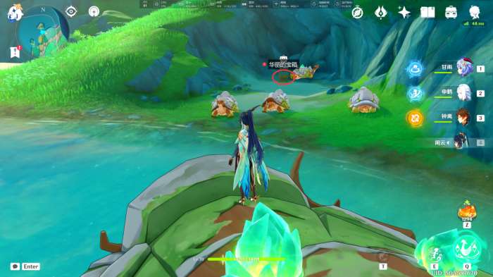 触摸「玉璜古龟」后,它背着我们开始往东北方向前进,慢慢游到了「玉璜龟」的栖息地,之后我们获得一个华丽的宝箱
