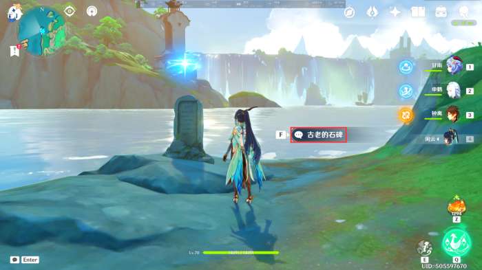 在此处可以看到一个「古老的石碑」,我们靠近与其交互,阅读一下上面的内容