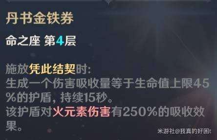 还有烟绯也很适合试做金珀,不过得是四命烟绯,同时需要将其作为盾辅来使用。四命烟绯的效果是在开大会时提供一个持续15秒的45%生命上限的护盾。如果试着将其制作成金珀,并提高生命上限,就可以增加护盾量。同时,配合金珀的全队回血被动技能,就可以轻松保护队友。