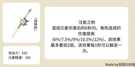 铁蜂刺的主要能力依赖于副属性精通,通过精通来提升其吃饭能力;而万叶需要精通来增加伤害,而久岐忍需要精通来提高其治愈和种子伤害能力。然而,这两个角色自身的攻击伤害并不高,因此铁蜂刺的被动能力无法充分发挥作用。