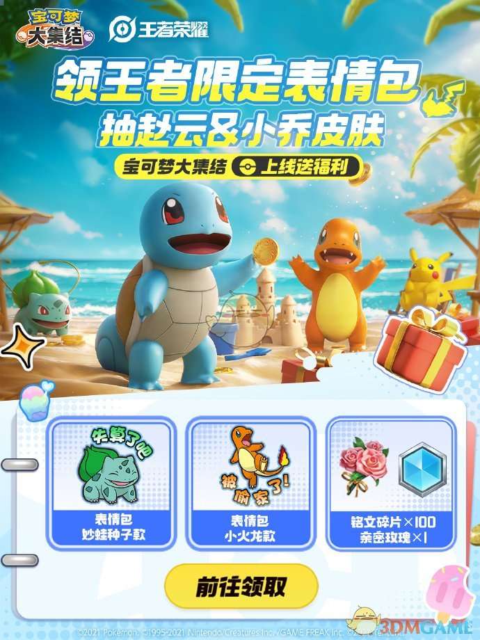 登录《宝可梦大集结》并完成任意一场对局,即可前往王者荣耀相关活动页面领取可达鸭款表情包和皮卡丘款表情包。