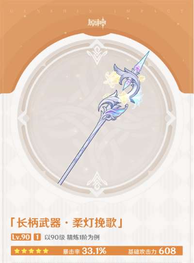 由于面板属性高,使用长枪的主C都可以使用,但是因为机制上跟燃烧体系绑定,泛用性比较差,基本只有仆人、胡桃、香菱可以考虑使用。