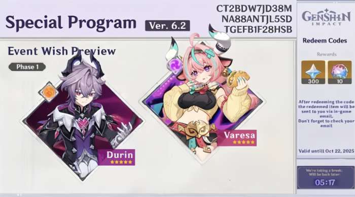 6.2版本就不多说了,紧接着就是6.3卡池的安排,最近有关于6.3及后续卡池消息也非常多,就网传消息汇总来看,6.3卡池会有三位新角色登场,分别是:少女哥伦比娅、兹白、叶洛亚。