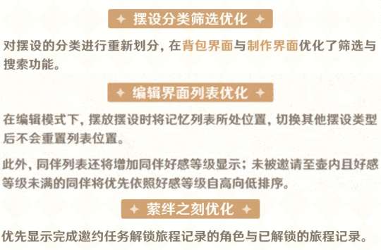 ③尘歌壶优化:摆设分类筛选优化、编辑界面列表优化、萦绊之刻优化
