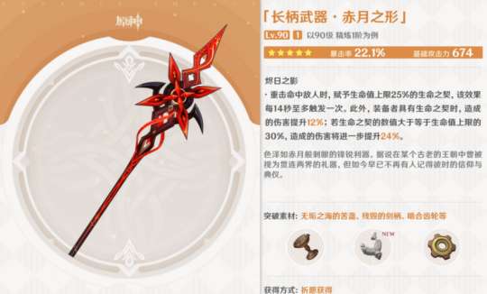 当然也可以用新出的武器 ——> 赤月之形 来给自己施加生命之契,但为了一套圣遗物而抽一把武器,怎么想都不太划算,当然,抽仆人的话还是可以考虑一下的,接下来就展开说一下。