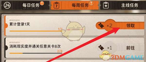 答:前往任务栏目,点击每周任务下的奖励进行领取即可获取奖励物品