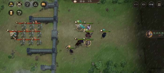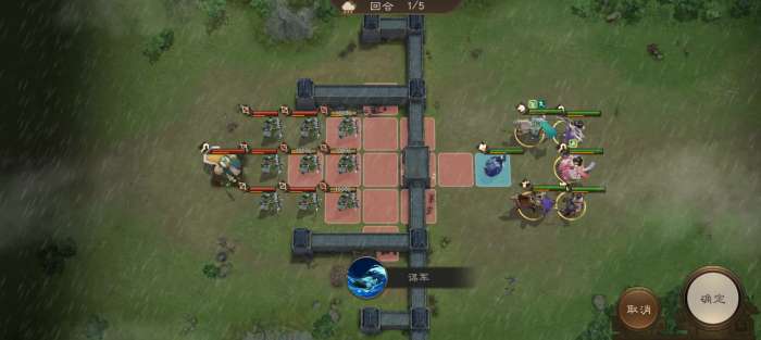 开局郭嘉向前移动一格,用谋军把四个弩兵减速,谋军两段伤害能直接把弩兵移动扣到1,这样一来弩兵就走不到关隘了