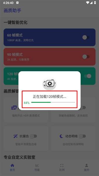 2、在首页可以在多个智能帧率优化模式自由地选择开启