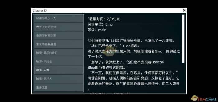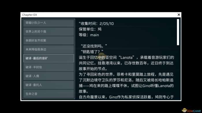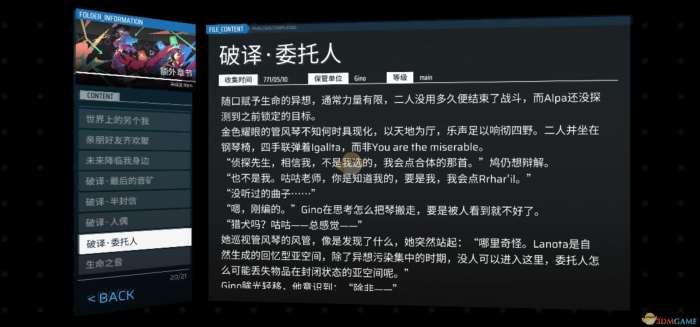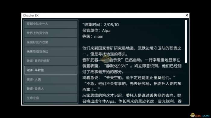 2、打Protoflicker获得【破译·半封信】这个剧情收集界面为3.0.0之前的。