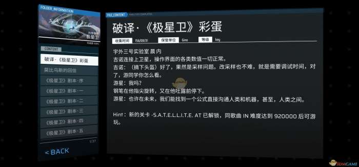 ⑤、在+ERABY+E CONNEC+10N第一次达到S或以上评级是会获得【破译·《极卫星》彩蛋】的文件