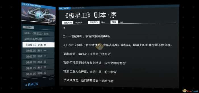 ④、在第一游玩S A.T.E.L.L.I.T.E.时,会获得【《极卫星》剧本·序】的这样一份收集品