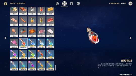 25%抗性加成,七元素各一种。和加伤药剂一起,14种药剂以最后服用为准,只生效一个。