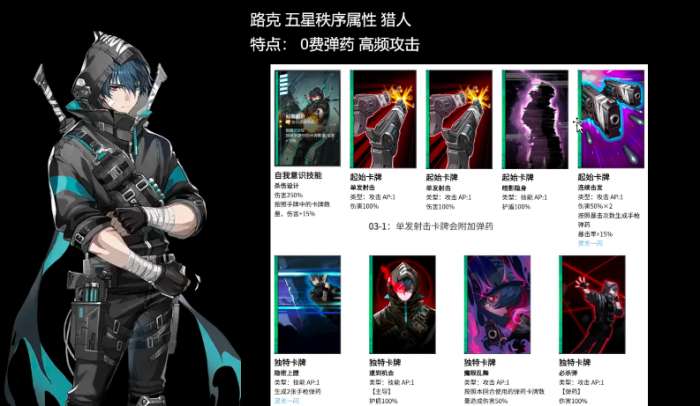 虽然在内测时期对洛克这个角色评价都较为一般,但就其卡组来看,不难推测他的后期潜力还是非常巨大的,尤其是角色的命中2命提升也是比较大的,角色的核心玩法主要是弹药,弹药目前是一个0费的模式,并且可造成高频率的攻击,从卡组阵容来看他使用攻击牌的频率会非常高,并且在费用要求上也比较低,新手玩家可尝试。