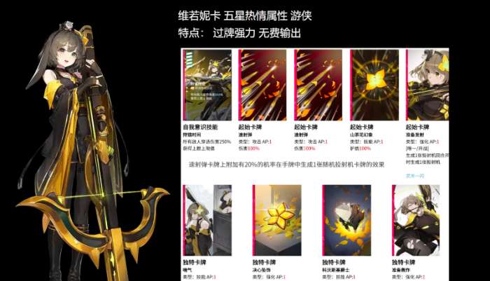 最后推荐的战斗员选手——维诺妮卡,作为五星热情属性游侠,她的过牌能力非常强,而且无费输出模式更是让许多玩家心动不已,在过牌队当中常担任主C,在不少队伍当中也可承担起副c位置,整体表现能力还是非常超群的。