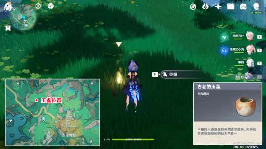 首先到下图所示位置的调查点挖掘,获得任务道具「古老的玉盏」。