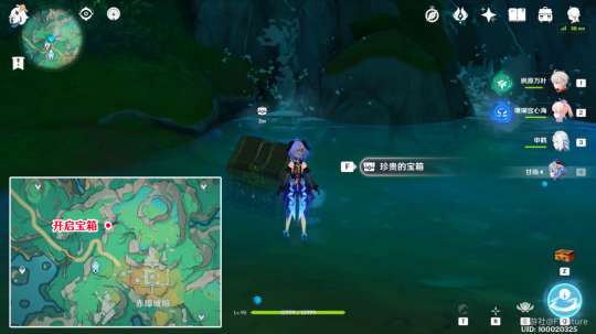 品茗后即可完成解谜,并解锁东北侧瀑布下的珍贵宝箱,我们过去开启一下宝箱。(注:此处的宝箱必须开启,不开的话最后不跳成就)