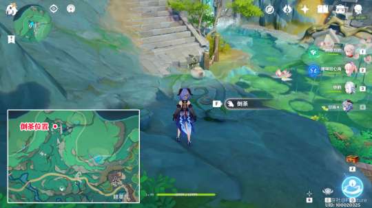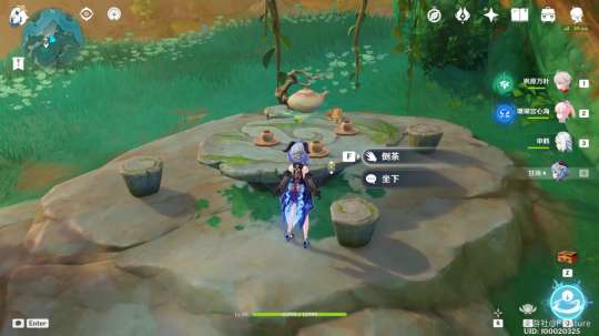 击败岩龙蜥后,我们到下图所示位置,此时这里就可以交互选择倒茶了。