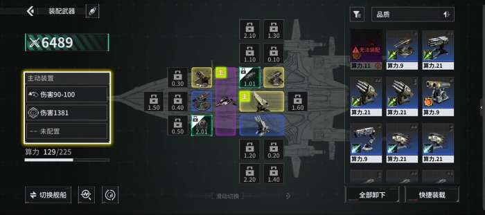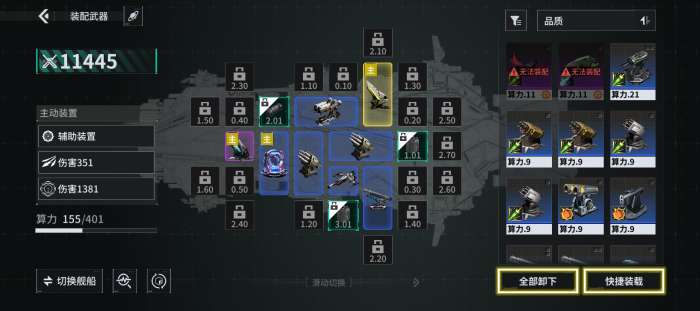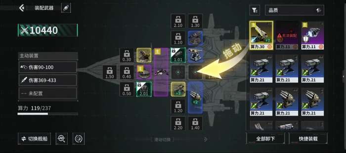 装备武器可显著提升舰船火力指数。选择目标武器,拖拽至指定空槽位,即可完成装配。