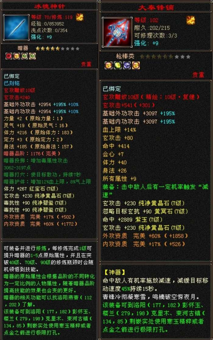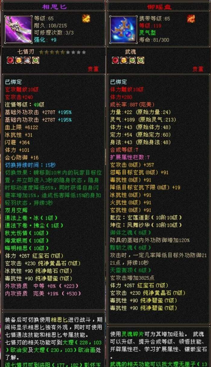 来吧!展示!可以看到武魂、暗器、副武器、项链等装备都上了双排7级抗,走的是冰毒双抗路线。