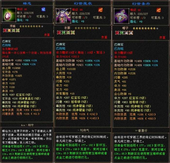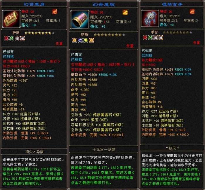 防具更不用说了,都是双排7级抗,放弃了身法。