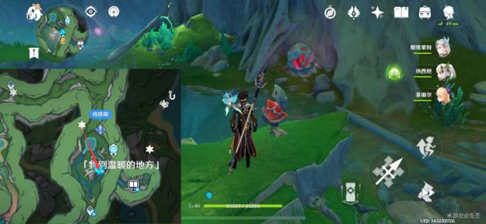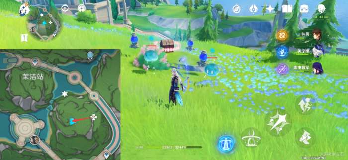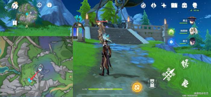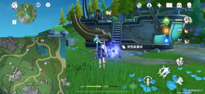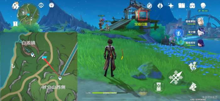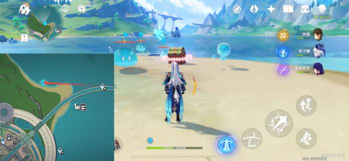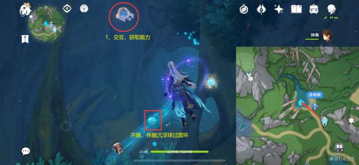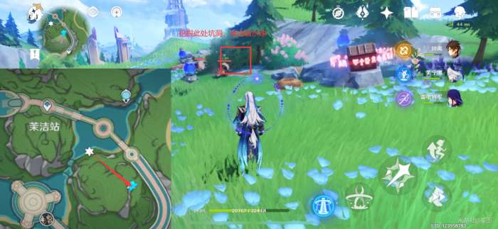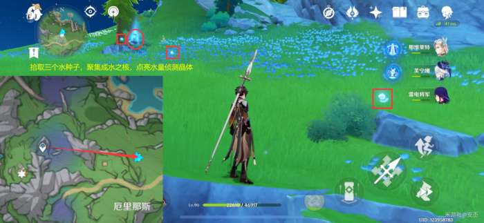 此处的水量侦测晶体,挖掘图示的坑洞,再击破水球,点亮三个水量侦测晶体,解锁精致宝箱(5原石)