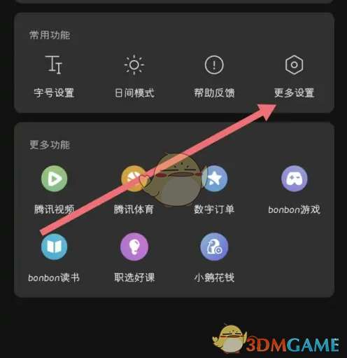 1、打开腾讯新闻在我的界面,点击更多设置。